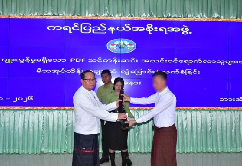 Five self-styled People’s Defence Force (PDF) members who accepted the peace initiatives of the State and the Tatmadaw returned to the legal fold yesterday, surrendering weapons and ammunition.