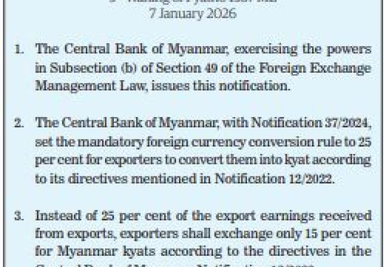 Republic of the Union of Myanmar Central Bank of Myanmar Notification 2/2026