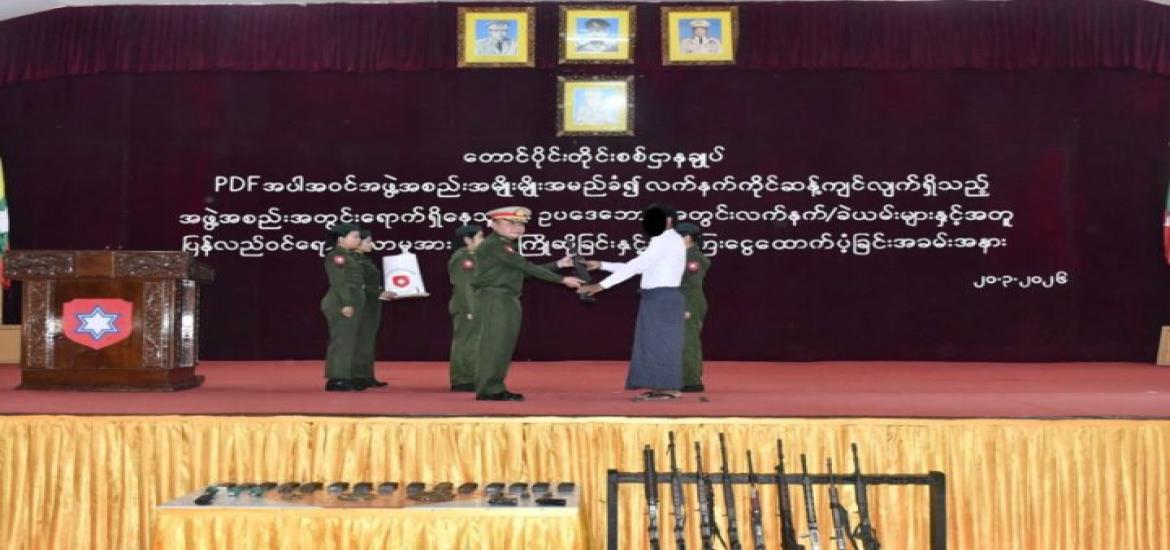 22 PDFs, including one AA member, rejoin legal fold with arms | Mar 21, 2026 The government is extending an invitation to those involved in MoD Union Minister encourages patients at Mawlamyine Tatmadaw hospital | Mar 21, 2026 Union Minister for Defence General Maung Maung Aye, accompanie 1st regular session of 3rd Sagaing Region Hluttaw commences | Mar 21, 2026 The first regular session of the Third Sagaing Region Hluttaw Pyidaungsu Hluttaw Upholds Separation of Powers, Checks and Balances | Mar 21, 2026 The Pyidaungsu Hluttaw Speaker extended greetings at the first Foreign investments allowed to use USD and CNY in Myanmar | Mar 21, 2026 In order to facilitate smoother investment processes and bette First regular session of Third Pyidaungsu Hluttaw commences | Mar 21, 2026 The first regular session of the Third Pyidaungsu Hluttaw was 62 foreign nationals arrested in Myawady for illegal entry | Mar 21, 2026 A total of 62 foreign nationals who had illegally crossed into 506 PDF members return to legal fold with arms and ammunition | Mar 20, 2026 MoFA Deputy Minister receives UNHCR Representative to Myanmar | Mar 20, 2026 Latest News | Mar 21, 2026 22 PDFs, including one AA member, rejoin legal fold with arms | Mar 21, 2026 MoD Union Minister encourages patients at Mawlamyine Tatmadaw hospital | Mar 21, 2026 1st regular session of 3rd Sagaing Region Hluttaw commences | Mar 21, 2026 Pyidaungsu Hluttaw Upholds Separation of Powers, Checks and Balances | Mar 21, 2026 Foreign investments allowed to use USD and CNY in Myanmar | Mar 21, 2026 First regular session of Third Pyidaungsu Hluttaw commences Most Popular 8th batch of China’s humanitarian aid arrives in Yangon Apr 23, 2025 Mongphone Sayadaw donates K50 mln to restore Mahamuni Pagoda Apr 23, 2025 182 EPS Myanmar workers deployed on 22 Apr Apr 23, 2025 21 cold storage facilities gear up to export freshwater fish to Saudi Arabia Apr 23, 2025 Myanmar-China Friendship Association funds religious site restorations in Mandalay & Sagaing Apr 23, 2025 Deputy PM MoTC Union Minister inspects Pyinmana Station, Cybersecurity Department Apr 23, 2025 CHAIRMAN OF THE STATE ADMINISTRATION COUNCIL'S SPEECH CONSTITUTION OF THE REPUBLIC OF THE UNION OF MYANMAR(2008) FIVE-POINT ROAD MAP OF THE STATE ADMINISTRATION COUNCIL FOUR OBJECTIVES OF THE NATIONAL DEFENCE AND SECURITY COUNCIL
