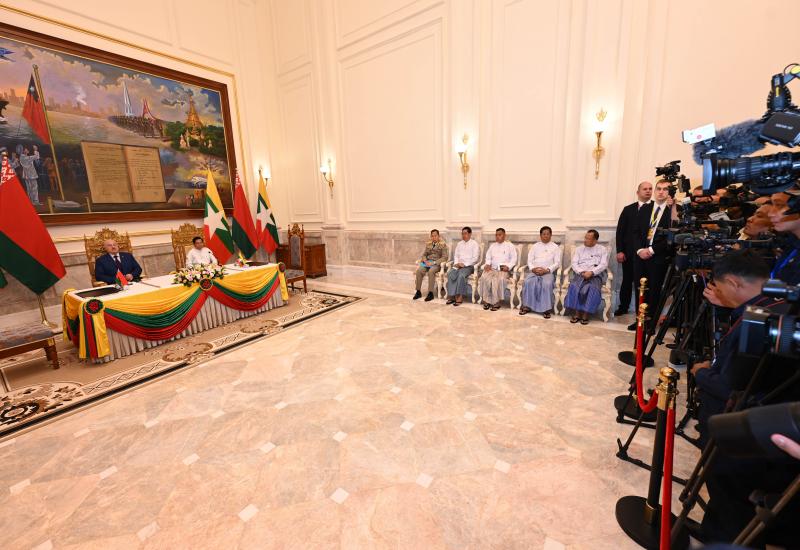 Belarus President Mr Aleksandr Lukashenko, Acting President of the Republic of the Union of Myanmar and SSPC Chairman Senior General Min Aung Hlaing plant commemorative tree | Nov 29, 2025 Belarus President Mr Aleksandr Lukashenko, Acting President of the Republic of the Union of Myanmar and SSPC Chairman Senior General Min Aung Hlaing pay homage to Maravijaya Buddha Image | Nov 29, 2025 Myanmar Acting President & SSPC Chair Senior General Min Aung Hlaing and Belarus President Mr Aleksandr Lukashenko brief media on bilateral joint declaration | Nov 29, 2025 Belarus keeps its doors open for deeper cooperation with Myanmar | Nov 29, 2025 Belarus voices continued support for Myanmar worldwide | Nov 29, 2025 Mongnawng raid nets fraud, gambling suspects along with arms and equipment | Nov 28, 2025 10 buildings in KK Park demolished, online scam hub buildings in Shwe Kokko sealed Off | Nov 28, 2025 Clarification on situations in Myawady Region | Nov 28, 2025 Team Myanmar joins closing ceremony of 33rd ASEAN Armies Rifle Meet | Nov 28, 2025 Latest News | Nov 29, 2025 Belarus President Mr Aleksandr Lukashenko, Acting President of the Republic of the Union of Myanmar and SSPC Chairman Senior General Min Aung Hlaing plant commemorative tree | Nov 29, 2025 Belarus President Mr Aleksandr Lukashenko, Acting President of the Republic of the Union of Myanmar and SSPC Chairman Senior General Min Aung Hlaing pay homage to Maravijaya Buddha Image | Nov 29, 2025 Myanmar Acting President & SSPC Chair Senior General Min Aung Hlaing and Belarus President Mr Aleksandr Lukashenko brief media on bilateral joint declaration | Nov 29, 2025 Belarus keeps its doors open for deeper cooperation with Myanmar | Nov 29, 2025 Belarus voices continued support for Myanmar worldwide | Nov 28, 2025 Mongnawng raid nets fraud, gambling suspects along with arms and equipment Most Popular Myanmar extradites 20 undocumented entrants Apr 23, 2025 2,400 tonnes of cement arrive at Yangon Port to meet demand Apr 23, 2025 21 cold storage facilities gear up to export freshwater fish to Saudi Arabia Apr 23, 2025 Yangon’s high-rise apartment sales decline Apr 23, 2025 Nay Pyi Taw Development Committee invites tender for 5,000 tonnes of coal Apr 23, 2025 Mongphone Sayadaw donates K50 mln to restore Mahamuni Pagoda Apr 23, 2025 CHAIRMAN OF THE STATE ADMINISTRATION COUNCIL'S SPEECH CONSTITUTION OF THE REPUBLIC OF THE UNION OF MYANMAR(2008) FIVE-POINT ROAD MAP OF THE STATE ADMINISTRATION COUNCIL FOUR OBJECTIVES OF THE NATIONAL DEFENCE AND SECURITY COUNCIL