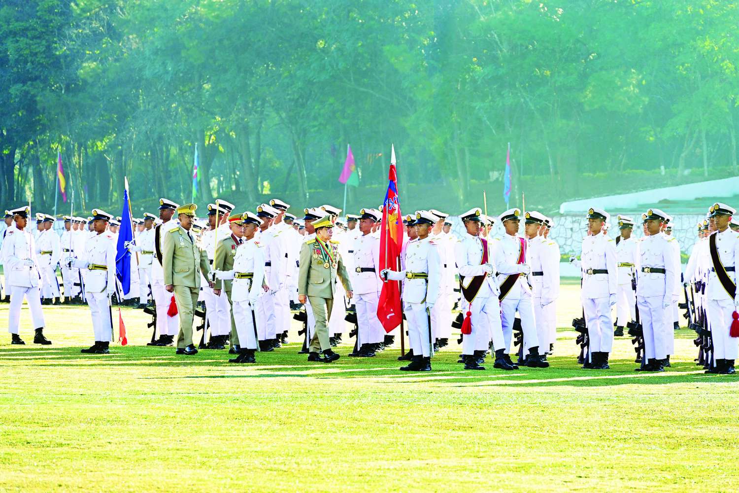 State Security and Peace Commission Chairman and Defence Services Commander-in-Chief Senior General Thadoe Maha Thray Sithu Thadoe Thiri Thudhamma Min Aung Hlaing delivered an address at the passing out parade of the 67th Intake of Defence Services Academy at the parade ground of the academy in PyinOoLwin yesterday morning.