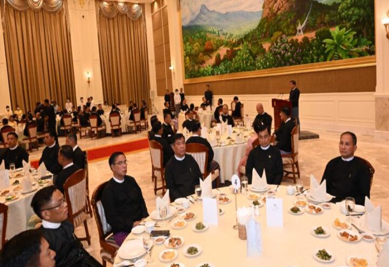 Acting President of the Republic of the Union of Myanmar and State Security and Peace Commission Chairman Senior General Min Aung Hlaing hosted a dinner in honour of the Myanmar delegation, which defended the case at the International Court of Justice (ICJ), at the Banquet Hall of the Office of the National Defence and Security Council yesterday evening.