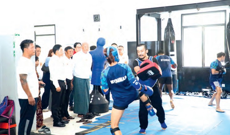 In the afternoon, the Union Minister inspected the training sessions of tentatively selected athletes in the Muay and Kickboxing events for the 33rd Southeast Asian Games at Theinbyu Gymnasium and reviewed necessary preparations for improving the sports facilities there.