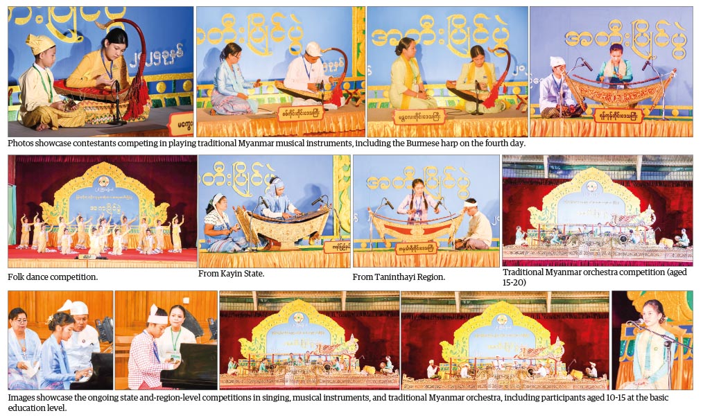 The fourth day of the central level of the 26th Traditional Myanmar Cultural Performing Arts Competitions 2025 was held at designated sites in Nay Pyi Taw yesterday.