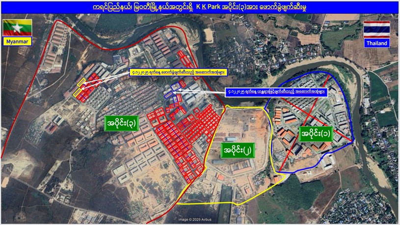 The Government of Myanmar continues its coordinated operations in the Shwe Kokko and Myawady-Maethawtalay (KK Park) areas, which have been hubs for online scam networks and illegal online gambling activities. Security personnel, administrative bodies, and local authorities have jointly entered illegal buildings, seized materials used in scam operations, and systematically demolished unlawful structures. To date, 297 illegal buildings in the KK Park area have been demolished.