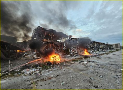 To destroy the illegal buildings within the KK Park area, these buildings were demolished using machinery and explosive devices starting from 14 December, and as of today, five two-storey buildings have been destroyed. As of yesterday, five more two-storey buildings have been destroyed, and a total of 86 buildings have been totally destroyed. To prevent future reuse of the materials in online scams and gambling activities in KK Park and Shwe Kokko areas, the seized materials were incinerated systematically.