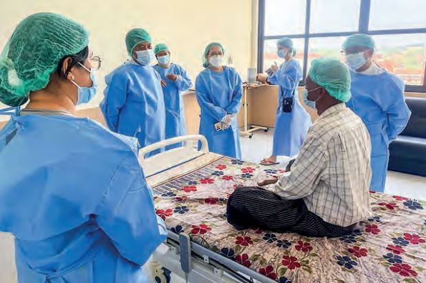The bone marrow transplants were carried out under the supervision of the hospital management team, with professors and specialists from the Department of Clinical Hematology, experts from related departments, professional nurses, and support staff all participating in the procedures. The four patients were a 63-year-old man from Kyaukdaga Township, Bago Region, a 46-year-old man from Mayangon Township, Yangon Region, a 47-year-old man from Budalin Township, Sagaing Region, and a 62-year-old man from Ayadaw Township, Sagaing Region.