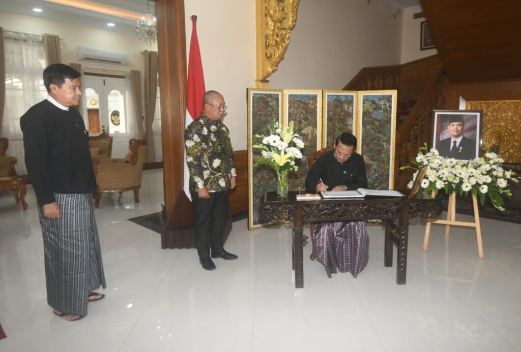 Upon arrival, the Union minister met the Charge d’Affaires ad interim and officials of the Embassy of Indonesia at the Embassy Guest Hall, expressed his condolences, on behalf of the Government of the Republic of the Union of Myanmar, on the passing of Mr Try Sutrisno, former Vice-President of the Republic of Indonesia, and signed the condolence book.