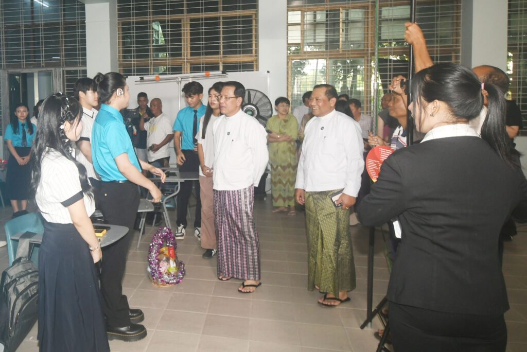 Union Minister for Information U Maung Maung Ohn visited the University of Foreign Languages, Yangon, to observe the filming of the Myanmar-Korea joint drama series yesterday. The production is being carried out as part of the Myanmar-Korea friendship and cultural exchange programme.