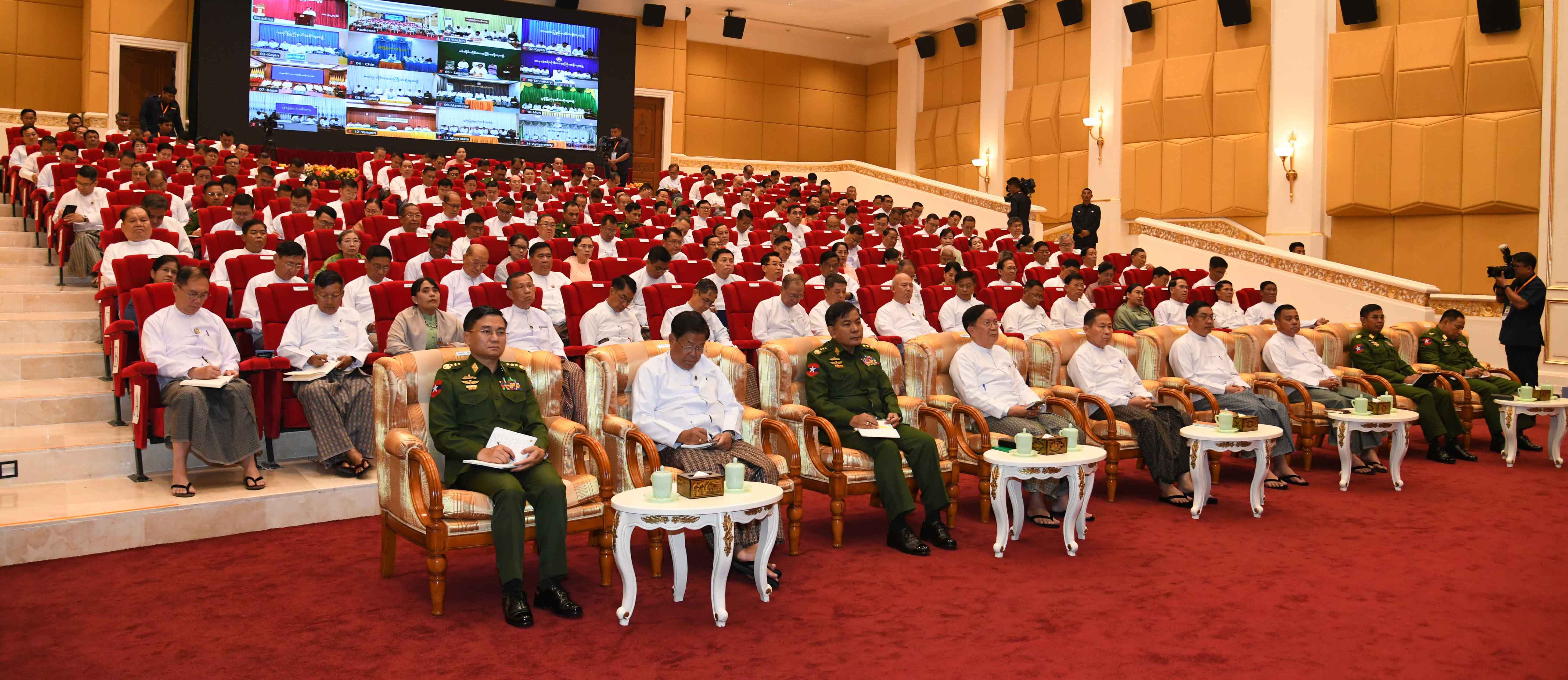 Also, present at the ceremony were Commission Vice-Chairman Vice-Senior General Soe Win, Commission member Prime Minister U Nyo Saw, Executive Chief U Aung Lin Dwe, Commission Secretary General Ye Win Oo and commission members, Union-level dignitaries, Union ministers, deputy ministers, permanent secretaries and directors-general of ministries, together with chief ministers and members of region and state governments through videoconferencing.