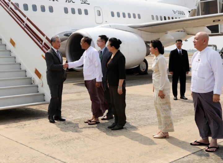 At the invitation of U Tin Maung Swe, Union Minister for Foreign Affairs of the Republic of the Union of Myanmar, Mr Wang Yi, Member of the Political Bureau of the Chinese Communist Party Central Committee and Minister of Foreign Affairs of the People’s Republic of China and the delegation, arrived in Nay Pyi Taw on the afternoon of 25 April 2026 by special aircraft for an official visit to Myanmar from 25 to 26 April 2026. They were warmly welcomed by Deputy Minister for Foreign Affairs U Ko Ko Kyaw and officials from the Ministry of Foreign Affairs at Nay Pyi Taw International Airport.