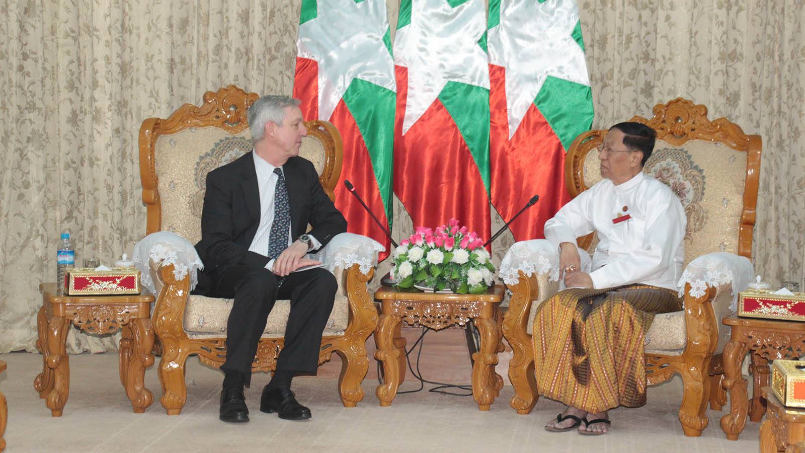 CHAIRMAN of the Union Election Commission U Hla Thein received a delegation led by Mr Tony Banbury, President of International Foundation for Electoral System (IFES), at his office in Nay Pyi Taw yesterday.