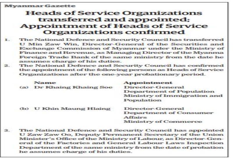 Heads of Service Organizations transferred and appointed; Appointment of Heads of Service Organizations confirmed