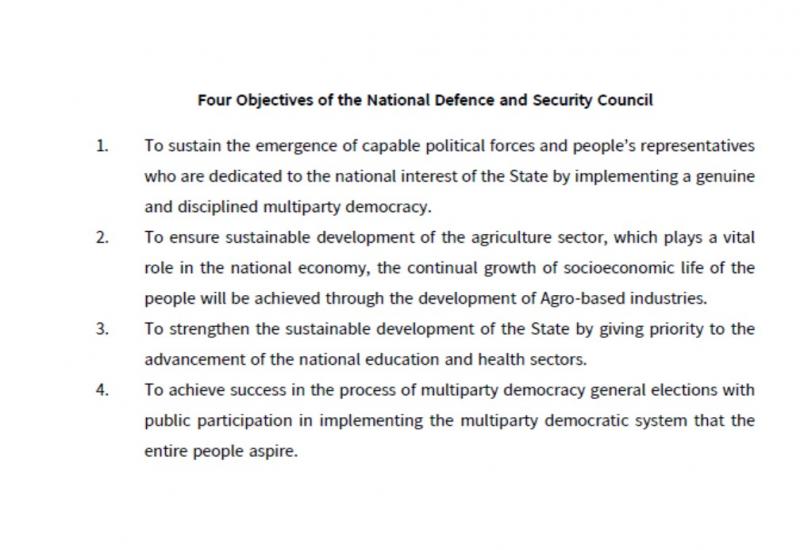 Republic of the Union of Myanmar of the National Defence and Security Council Four Objectives