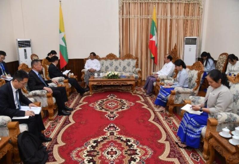 Union Minister for Foreign Affairs U Than Swe received Special Envoy for Asian Affairs of the Ministry of Foreign Affairs of China Mr Deng Xijun at the Ministry of Foreign Affairs in Nay Pyi Taw yesterday.