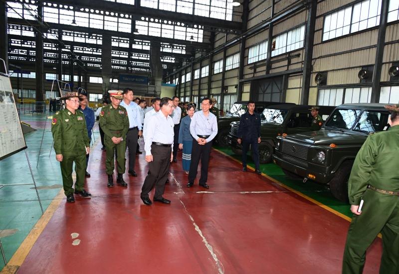 Chairman of the State Security and Peace Commission and Commander-in-Chief of Defence Services Senior General Min Aung Hlaing inspected the assembly and manufacturing of agricultural machinery and automobiles at local Tatmadaw Heavy Industries in Hsinde and Htonbo of Bago Region yesterday.