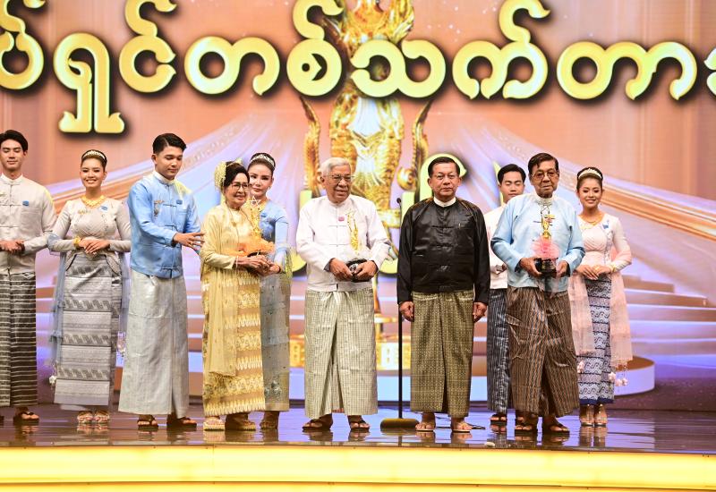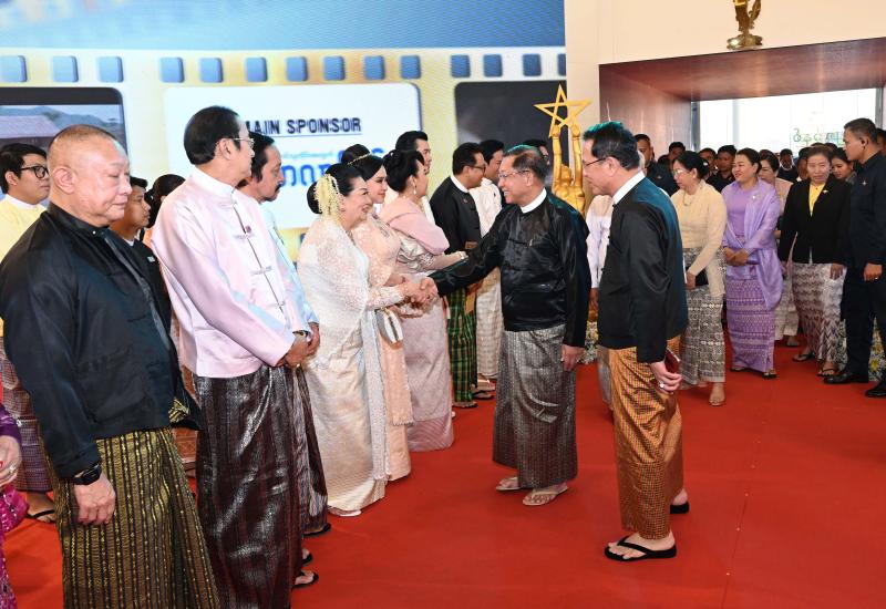 Acting President of the Republic of the Union of Myanmar and State Security and Peace Commission Chairman Senior General Min Aung Hlaing attended the 2025 Myanmar motion pictures outstanding award presentation ceremony at the Myanmar International Convention Centre I (MICC I) in Nay Pyi Taw yesterday evening and presented outstanding awards to the winners.
