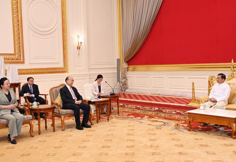 President of the Republic of the Union of Myanmar U Min Aung Hlaing received a delegation led by Mr Xu Qin, Chairman of the Standing Committee of the Heilongjiang Provincial People’s Congress and Secretary of the CPC Heilongjiang Provincial Committee of the People’s Republic of China, at the Presidential Palace Reception Hall in Nay Pyi Taw yesterday morning.
