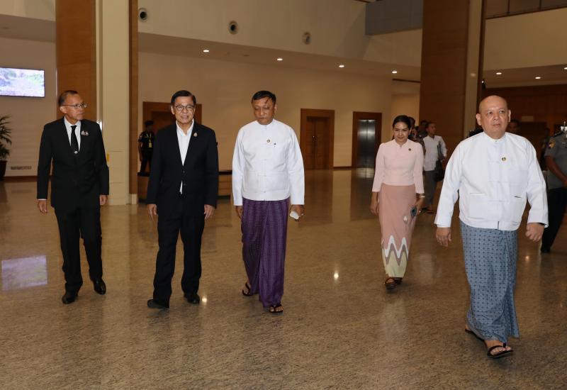 Mr Sihasak Phuangketkeow, Deputy Prime Minister and Minister of Foreign Affairs of Thailand, accompanied by his delegation, arrived in Nay Pyi Taw on the evening of 21 April 2026 by special aircraft for a visit to Myanmar from 21 to 22 April 2026. They were warmly welcomed at Nay Pyi Taw International Airport by the Deputy Minister for Foreign Affairs and senior officials from the Ministry of Foreign Affairs.