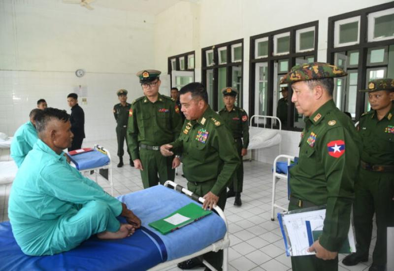 Commander-in-Chief of Defence Services General Ye Win Oo, accompanied by his wife Daw Nilar, senior Tatmadaw officers from the Office of the Commander-in-Chief and their wives, the commander of Triangle Region Command and officials, yesterday morning gave words of encouragement to officers, other ranks, members of the Myanmar Police Force and people’s military (local) members receiving medical treatment at the local Tatmadaw hospital in Mongphyat.