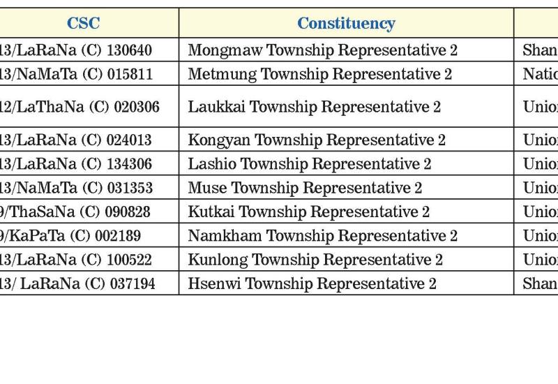Announcement on List of Individuals Elected as Region or State Hluttaw Representatives