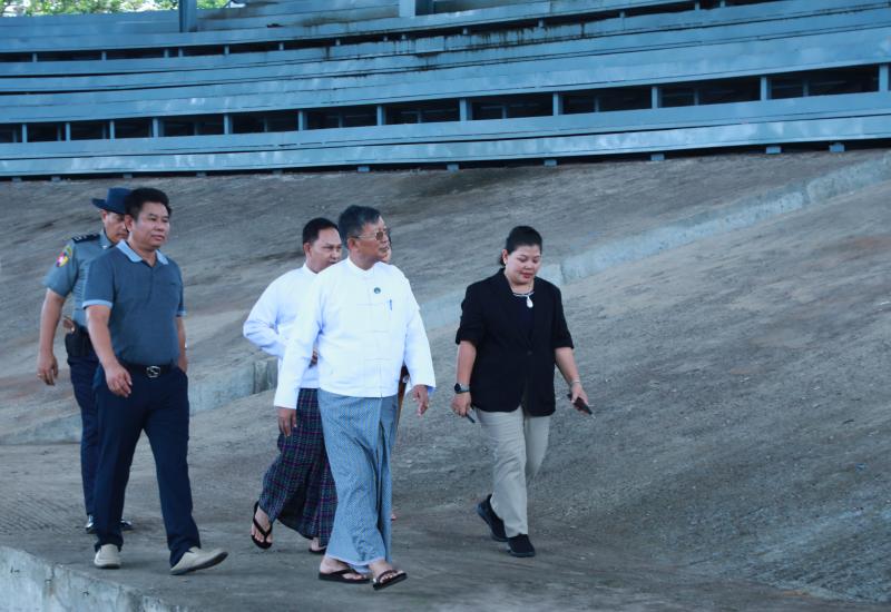 Union Minister for Religious Affairs and Culture U Tin Oo Lwin inspected the construction works of the Myanmar Art Centre (Yangon) on Mindhamma Road, Insein Township, Yangon, on 21 September.