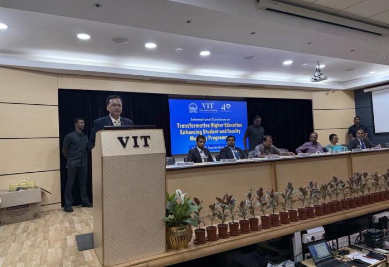Deputy Minister for Education Dr Zaw Myint led the Myanmar delegation to the International Conclave 2025, a two-day event focused on transformative higher education and enhancing student and faculty mobility, held at the Vellore Institute of Technology (VIT) in Vellore, Tamil Nadu, India, from 18 to 19 September.