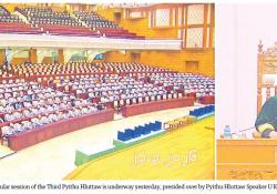 The first regular session of the Third Pyithu Hluttaw continued its third-day session at the convention hall of the Pyithu Hluttaw at the Hluttaw Complex in Nay Pyi Taw yesterday morning.
