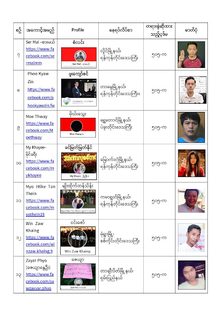 နိုင်ငံတော်၏ အုပ်ချုပ်မှုယန္တရားပျက်ပြားစေရန်ရည်ရွက်ချက်ဖြင့် နိုင်ငံ့ဝန်ထမ်းများအား CDM လှုပ်ရှားမှုတွင် ပါဝင်စေရန်လှုံ့ဆော်ခြင်း၊ CRPH မတရားအသင်းအား ထောက်ခံသည့် အကြောင်းအရာများ၊ မမှန်သတင်းများအားဖြန့်ဝေခြင်း၊ နိုင်ငံတော်တည်ငြိမ်အေးချမ်းမှုကို ပျက်ပြားစေပြီး ဆူပူအုံကြွမှုဖြစ်ပေါ်စေရန်နှင့် အများပြည်သူအထိတ်တလန့်ဖြစ်စေရန် အတွက် သွေးထိုးလှုံ့ဆော်မှုများပြုလုပ်ခြင်း၊ Social Pumishment ပြုလုပ်ခြင်းများကို လူမှုကွန်ရက် စာမျက်နှာများတွင် ရည်ရွယ်ချက်ရှိရှိ ဖြင့်ဖော်ပြခြင်းနှင့် ဖြန့်ဝေခြင်းများ ဆောင်ရွက် လျက်ရှိသည့် အနုပညာရှင်အချို့နှင့် အခြားပါဝင် ပတ်သက်သူများအား ရာဇသတ်ကြီးပုဒ်မ ၅၀၅-က ဖြင့် အမှုဖွင့်အရေးယူ ဆောင်ရွက်လျက်ရှိကြောင်းကို နေ့စဉ်သတင်းထုတ်ပြန်လျက် ရှိပါသည်။