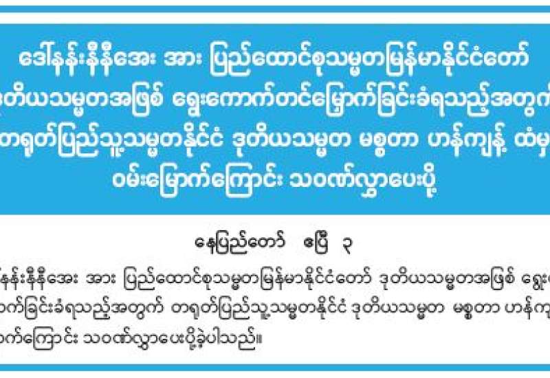 ဦးစွာ ပြည်ထောင်စုဝန်ကြီးက သာသနာရေးဆိုင်ရာများ လျှောက်ထားသည်။