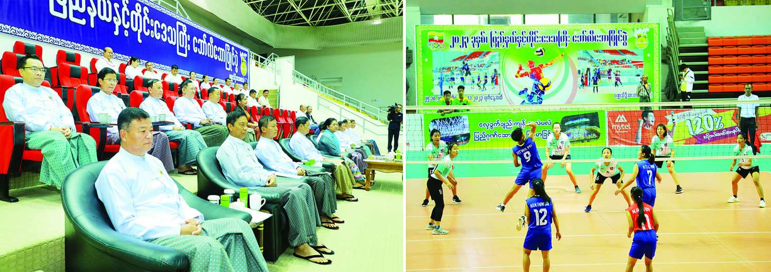 ထို့နောက် နိုင်ငံတော်စီမံအုပ်ချုပ်ရေးကောင်စီအဖွဲ့ဝင်များ၊ ပြည်ထောင်စုဝန်ကြီးများနှင့် ဧည့်ပရိသတ်များသည် ဘော်လီဘောအမျိုးသားပြိုင်ပွဲ ဧရာဝတီတိုင်းဒေသကြီးအသင်းနှင့် တနင်္သာရီတိုင်းဒေသကြီး အသင်းတို့၏ ယှဉ်ပြိုင်ကစားနေမှုများကို ကြည့်ရှုအားပေးကြသည်။