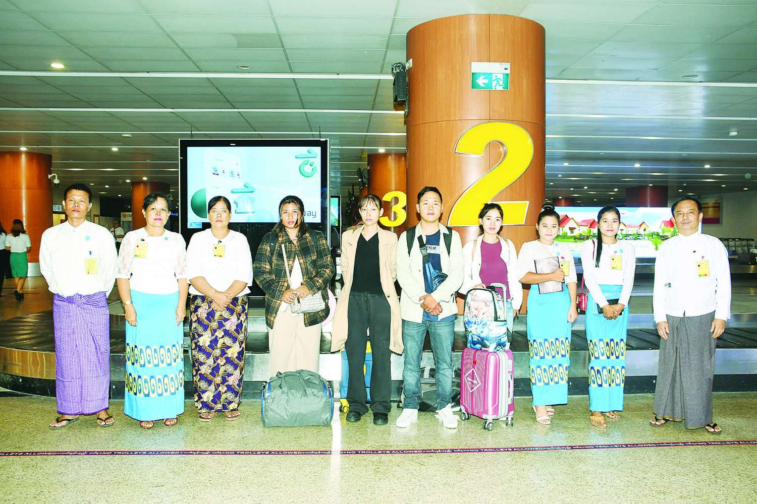 မြန်မာနိုင်ငံသို့ ပြန်လည်ရောက်ရှိလာသည့် အစ္စရေးနိုင်ငံရောက် မြန်မာနိုင်ငံသားများအား နိုင်ငံခြားရေးဝန်ကြီးဌာန စီမံကိန်းနှင့်စီမံရေးရာဦးစီးဌာနနှင့် ကောင်စစ်ရေးရာနှင့် ဥပဒေရေးရာဦးစီးဌာနတို့မှ တာဝန်ရှိသူများ၊ လူမှုဝန်ထမ်း၊ ကယ်ဆယ်ရေးနှင့် ပြန်လည်နေရာချထားရေးဝန်ကြီးဌာန ဘေးအန္တရာယ်ဆိုင်ရာ စီမံခန့်ခွဲမှုဦးစီးဌာနမှ တာဝန်ရှိသူများနှင့် မိသားစုဝင်များက ရန်ကုန်အပြည်ပြည်ဆိုင်ရာလေဆိပ်၌ ကြိုဆိုနှုတ်ဆက်ကြသည်။