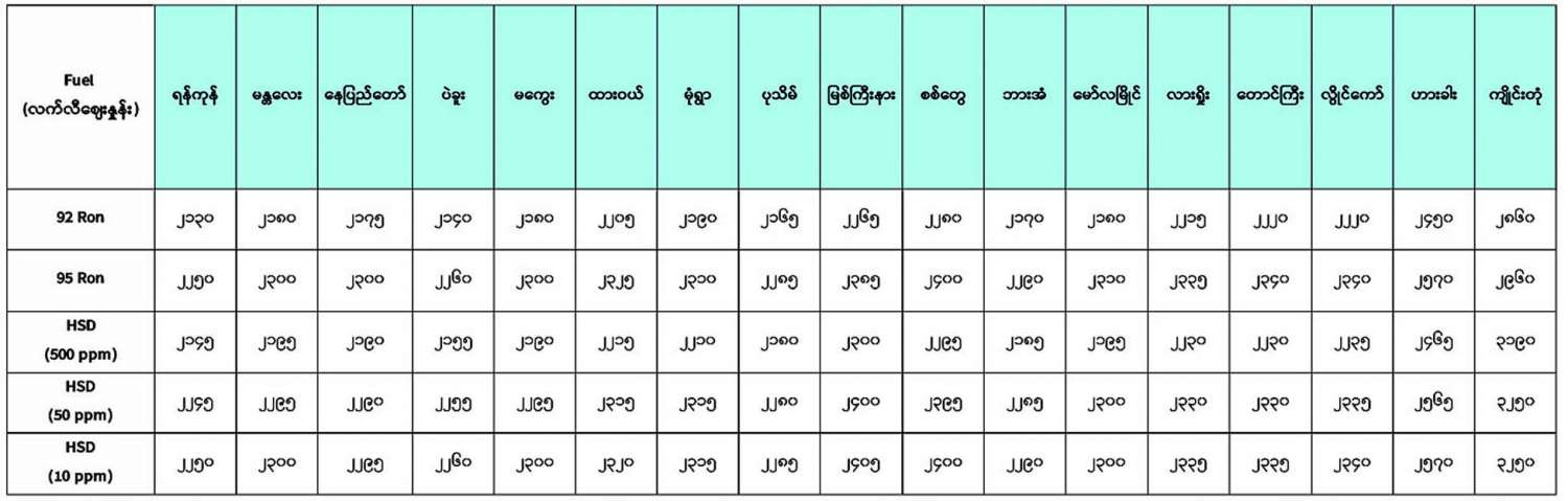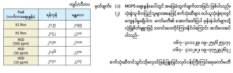ရန်ကုန်မြို့နှင့်မန္တလေးမြို့အတွက် ရည်ညွှန်းလက်ကားဈေးနှုန်းများနှင့် ပြည်ထောင်စုနယ်မြေ နေပြည်တော်၊ တိုင်းဒေသကြီး/ပြည်နယ် မြို့တော်များအတွက် ရည်ညွှန်းလက်လီဈေးနှုန်းများ 11/12/2023