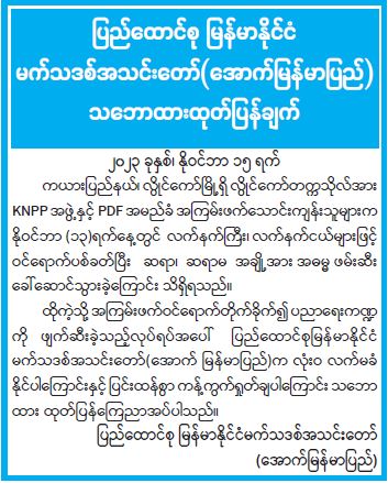 နိုင်ငံတော်အစိုးရ၏ ကြေညာချက်များ