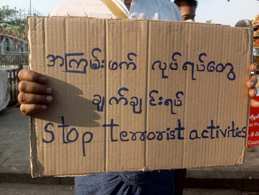 ရန်ကုန်တိုင်းဒေသကြီး၊ ဗဟန်းမြို့နယ်၊ ကြေးသွန်းဘုရားရှေ့တွင် ယနေ့ညနေ ၄ နာရီက ပြည်တွင်းရေးဝင်ရောက်စွက်ဖက်မှုများအား ဆန့်ကျင်ကန့်ကွက်ရှုတ်ချပွဲကို အမျိုးသားရေးလှုပ်ရှားသူများက ဦးဆောင်ကျင်းပခဲ့သည်။