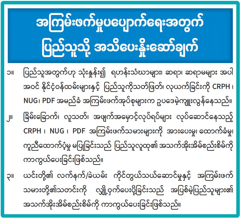 အကြမ်းဖက်မှုပပျောက်ရေးအတွက် ပြည်သူသို့အသိပေးနှိုးဆော်ချက်