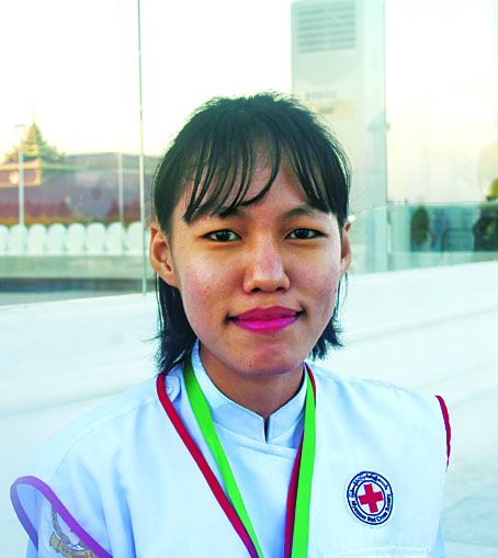 ကျွန်မက မြန်မာနိုင်ငံကြက်ခြေနီအသင်း တပ်ကုန်းမြို့ဌာနခွဲက လာရောက်တာဝန်ထမ်းဆောင်တာ ဖြစ်ပါတယ်။ ကျွန်မတို့အသင်းက မာရဝိဇယဘုရားကြီးရဲ့ နေရာတွေအနှံ့မှာ တာဝန်ချထားပါတယ်။ ကျွန်မတို့က ဘုရားဖူးပြည်သူတွေ ကျန်းမာရေးတစ်စုံတစ်ရာ ချို့ယွင်းရင် ရှေးဦးသူနာပြုနည်းနဲ့ အရင်စောင့်ရှောက်သွားမှာ ဖြစ်ပါတယ်။ အရေးပေါ်လိုအပ်ရင်တော့ ဆေးရုံကြီးကို ပို့ဆောင်ပေးသွားမှာ ဖြစ်ပါတယ်။ အခုလိုနေ့ထူးနေ့မြတ်မှာ ကိုယ်တတ်ကျွမ်းတဲ့ အတတ်ပညာနဲ့ ပြည်သူတွေကို ကူညီစောင့်ရှောက်ခွင့်ရတဲ့အတွက် အလွန်ဝမ်းသာ ပီတိဖြစ်မိပါတယ်။ ဘုရားကြီးမှာ ကုသိုလ်ပြုရင်း တစ်ခါမှမမြင်ဖူးတဲ့ မီးပုံးပျံလွှတ်တင်တာတွေလည်း မြင်ဖူးရတော့ အလွန်ပျော်မိပါတယ်။