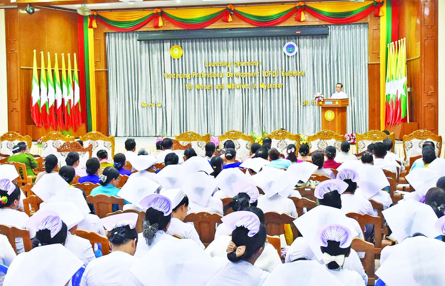 မြန်မာနိုင်ငံရှိ သူနာပြုနှင့်သားဖွားများအတွက် အသုံးပြုမည့် အတည်ပြုပြီးသည့် (CPD) စနစ်အား စတင်ဆောင်ရွက်မည်ဖြစ်ကြောင်း အသိပေးတင်ပြခြင်းအခမ်းအနား (Launching Ceremony: Continuing Professional Development (CPD) Guideline for Nurses and Midwives in Myanmar) ကို ယနေ့နံနက်ပိုင်းတွင် ကျန်းမာရေးဝန်ကြီးဌာန အစည်းအဝေးခန်းမ၌ ကျင်းပသည်။