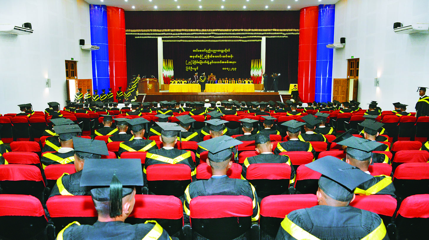 တပ်မတော်နည်းပညာတက္ကသိုလ်၏ (၂၅)ကြိမ်မြောက် ဘွဲ့နှင်းသဘင်အခမ်းအနားကို ယနေ့နံနက်ပိုင်းတွင် တပ်မတော်နည်းပညာတက္ကသိုလ် ဘွဲ့နှင်းသဘင်ခန်းမ၌ ကျင်းပပြုလုပ်ရာ တပ်မတော်နည်းပညာတက္ကသိုလ်ကျောင်းအုပ်ကြီး ဗိုလ်မှူးချုပ်အေးမင်းဦး၊ တပ်မတော်နည်းပညာတက္ကသိုလ်ပါမောက္ခချုပ် ဗိုလ်မှူးချုပ်သောင်းနိုင်နှင့် တပ်မတော်နည်းပညာတက္ကသိုလ်မှ ပညာရေးအဖွဲ့ဝင်များ တက်ရောက်ကြသည်။