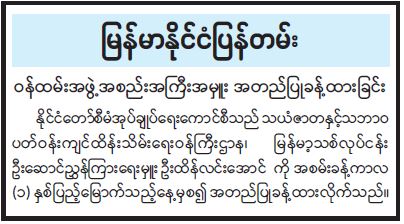 ဝန်ကြီးဌာန ကြေညာချက်များ