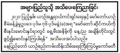 အများပြည်သူသို့ အသိပေးကြေညာခြင်း