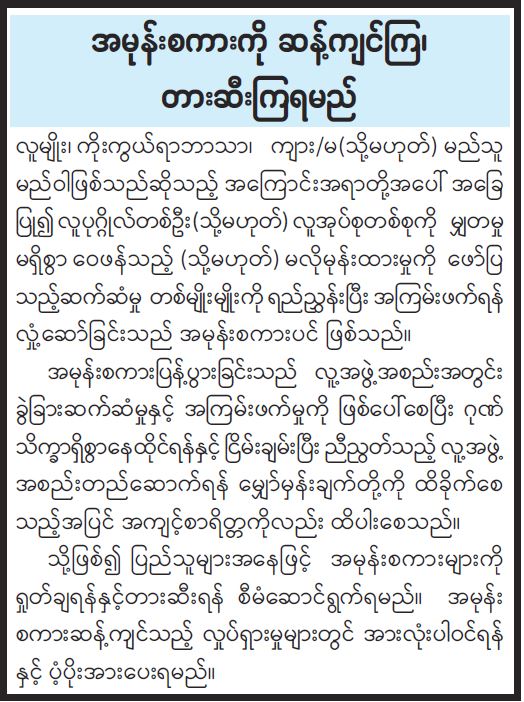 သို့ဖြစ်၍ ပြည်သူများအနေဖြင့် အမုန်းစကားများကို ရှုတ်ချရန်နှင့်တားဆီးရန် စီမံဆောင်ရွက်ရမည်။ အမုန်းစကားဆန့်ကျင်သည့် လှုပ်ရှားမှုများတွင် အားလုံးပါဝင်ရန်နှင့် ပံ့ပိုးအားပေးရမည်။