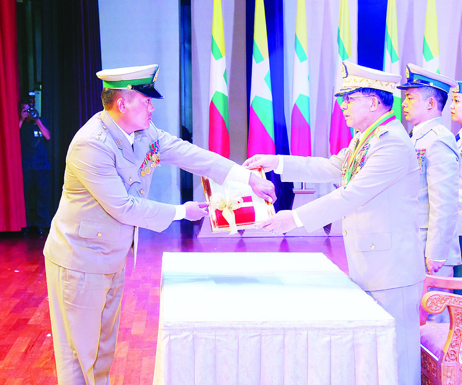 ယင်းနောက် နိုင်ငံတော်စီမံအုပ်ချုပ်ရေးကောင်စီဥက္ကဋ္ဌ တပ်မတော်ကာကွယ်ရေးဦးစီးချုပ်က သူရဲကောင်းမှတ်တမ်းဝင်တံဆိပ်ရရှိသူ ဒုတိယဗိုလ်မှူးကြီးသုံးဦး၊ ဗိုလ်မှူးကိုးဦး၊ ဗိုလ်ကြီး ၁၀ ဦး၊ ဗိုလ် တစ်ဦး၊ ဒုတိယအရာခံ ဗိုလ်တစ်ဦး၊ ဒုတိယတပ်ကြပ်တစ်ဦးတို့ကို ဆုတံဆိပ်များ ပေးအပ်ချီးမြှင့်သည်။