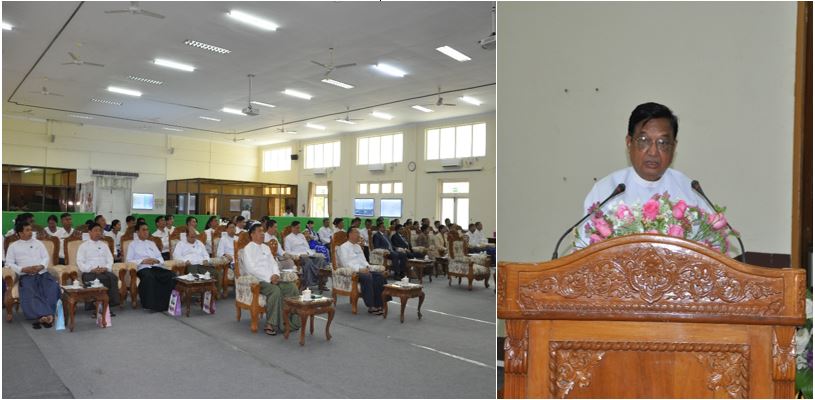 ရှေးဦးစွာ အမှတ်(၈)စက်မှုသင်တန်းကျောင်း (သထုံ) စီမံကိန်းအကောင်အထည်ဖော် ဆောင်ရွက်ခဲ့သည့် အခြေအနေများကို Video Clip ဖြင့်ပြသပြီး စက်မှုဝန်ကြီးဌာန၊ ပြည်ထောင်စုဝန်ကြီးက အမှတ်(၈)စက်မှုသင်တန်းကျောင်း (သထုံ) သည် အသိဉာဏ်ပညာဖွံ့ဖြိုးတိုးတက်မှုရရှိနိုင်စေမည့် လေ့ကျင့်ရေးသင်တန်းကျောင်းအဖြစ် ဖွင့်လှစ်ဆောင်ရွက်တော့ မည်ဖြစ်ကြောင်း၊ အဆိုပါသင်တန်းကျောင်းသည် အိန္ဒိယအစိုးရ၏ အထောက်အပံ့ဖြင့် မြန်မာနိုင်ငံနှင့် HMT International Ltd. (India) တို့ ပူးပေါင်းဆောင်ရွက်တည် ထောင်ခဲ့ခြင်းဖြစ်ကြောင်း၊ ယခုသင်တန်းကျောင်းကို အကောင်အထည်ဖော်နိုင်ခြင်းသည် မြန်မာနိုင်ငံ၏ စက်မှုကဏ္ဍဖွံ့ဖြိုးတိုးတက်ရေးအတွက် အထောက်အကူပြုမည်ဖြစ်ကြောင်း၊ စက်မှုဝန်ကြီးဌာနအနေဖြင့် ခေတ်မီနည်းပညာများ လေ့ကျင့်သင်ကြားပေးနိုင်မည်ဖြစ်၍ လူ့စွမ်းအားအရင်းအမြစ်မြှင့်တင်ပေးနိုင်မည့် မျှော်မှန်းချက်အား ဖြည့်ဆည်းပေးနိုင်မည်ဖြစ်ကြောင်း။