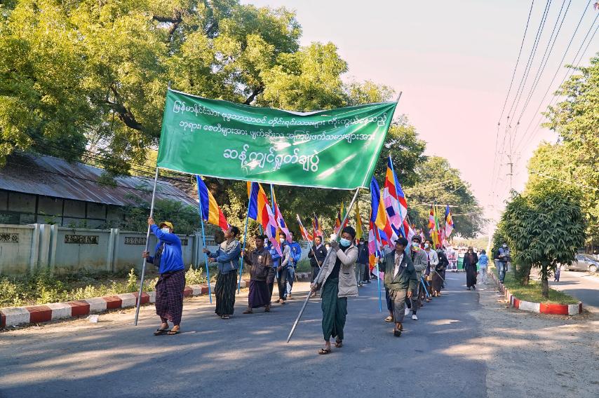 အဆိုပါကန့်ကွက်ရှုတ်ချပွဲတွင် ဆရာတော်သံဃာတော်များနှင့် ပြည်သူစုစုပေါင်း (၂၀၀၀) ဦးခန့်တို့က နံနက် ၈နာရီအချိန်ခန့်က ပခုက္ကူမြို့၊ အမှတ်(၁)ရပ်ကွက်၊ ပြည်သာယာခန်းမရှေ့စုရပ်မှ မြို့မလမ်းအတိုင်း ရွှေမုဋ္ဌောဘုရားရင်ပြင်အထိ ငြိမ်းချမ်းစွာ စီတန်းလှည့်လည်ကြပြီး “မြန်မာနိုင်ငံသား ဗုဒ္ဓဘာသာဝင်တိုင်းရင်းသားများ အထွဋ်အမြတ်ထားကိုးကွယ်နေသည့် ဘုရား၊ စေတီများအား ဖျက်ဆီးသူအကြမ်းဖက်သမားများအား ဆန့်ကျင်ကြ”၊ “NLD/NUG နှင့် ပြည်ဖျက်မိစ္ဆာများ ဘာသာ သာသနာကို ဖျက်စီးနေကြပြီ”၊ “အမျိုးဘာသာသာသနာအား ဖျက်စီးသည့် အကြမ်းဖက်အဖွဲ့များအား ချေမှုန်းကြ ချေမှုန်းကြ”၊ “အမျိုးဘာသာသာသနာအား ဖျက်စီးသည့် အကြမ်းဖက်အဖွဲ့များအား အလိုမရှိ အလိုမရှိ”၊ “လမ်းတံတားများကိုဖျက်စီး၊ ဒေသခံပြည်သူများ၏ လူမှုစီးပွားဘဝကိုဖျက်ဆီးနေသော ပြည်ဖျက်မိစ္ဆာများအား အလိုမရှိ”၊ “နိုင်ငံတော်၏နယ်မြေတည်တံ့ ခိုင်မြဲရေးနှင့် အချုပ်အခြာအာဏာကို ကာကွယ်စောင့်ရှောက်ရန် နိုင်ငံသားတိုင်းတွင် တာဝန်ရှိသည်”၊ “အချုပ်အခြာအာဏာကို ထိပါးစော်ကားလာသော ပြည်ဖျက်မိစ္ဆာများအား ဆန့်ကျင်ကြ”၊ “ ပြည်သူတွေရဲ့အသက်ကိုရောင်း ဒေါ်လာတောင်းစားနေသည့် ခွေးဝဲစားပြည်ဖျက်မိစ္ဆာများ အလိုမရှိ”၊ “လူမျိုးရေးခွဲခြား၊ သာသနာကို စော်ကားဖျက်စီးနေသူများအား ဆန့်ကျင်ကြ”၊ "ပြည်ပဩဇာခံ၊ ပြည်ဖျက်မိစ္ဆာများအား အလိုမရှိ”၊ “ဘုရားစေတီများအား ဖျက်ဆီးနေသည့် လူသတ်အကြမ်းဖက်သူပုန်မှန်သမျှ ကျဆုံးပါစေ” စသည့် စာသာများပါဝင်သည့် ဗီနိုင်များကိုင်ဆောင်၍ ကြွေးကြော်ကာ ကန့်ကွက်ရှုတ်ချခဲ့ကြသည်။