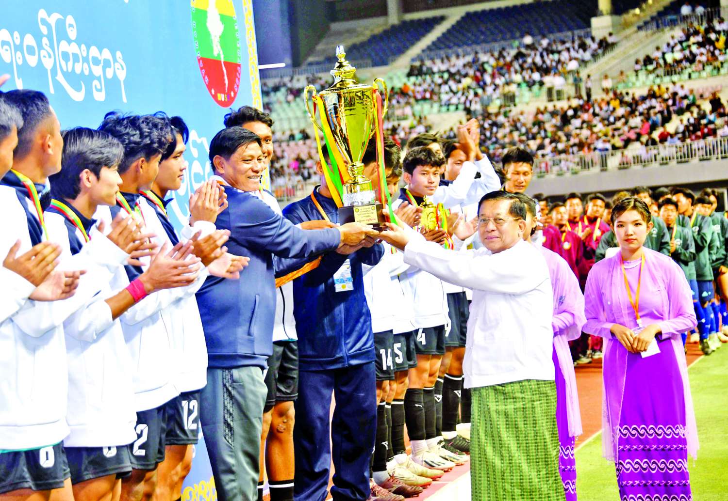 ယင်းနောက် နိုင်ငံတော်စီမံအုပ်ချုပ်ရေးကောင်စီဥက္ကဋ္ဌ နိုင်ငံတော်ဝန်ကြီးချုပ် ဗိုလ်ချုပ်မှူးကြီး မင်းအောင်လှိုင်က ပထမဆုရရှိသည့် မော်လမြိုင်ဇုန်အသင်းအား ဂုဏ်ပြုဆုငွေများနှင့် တံခွန်စိုက်ဆုဖလားကို ပေးအပ်ချီးမြှင့်သည်။