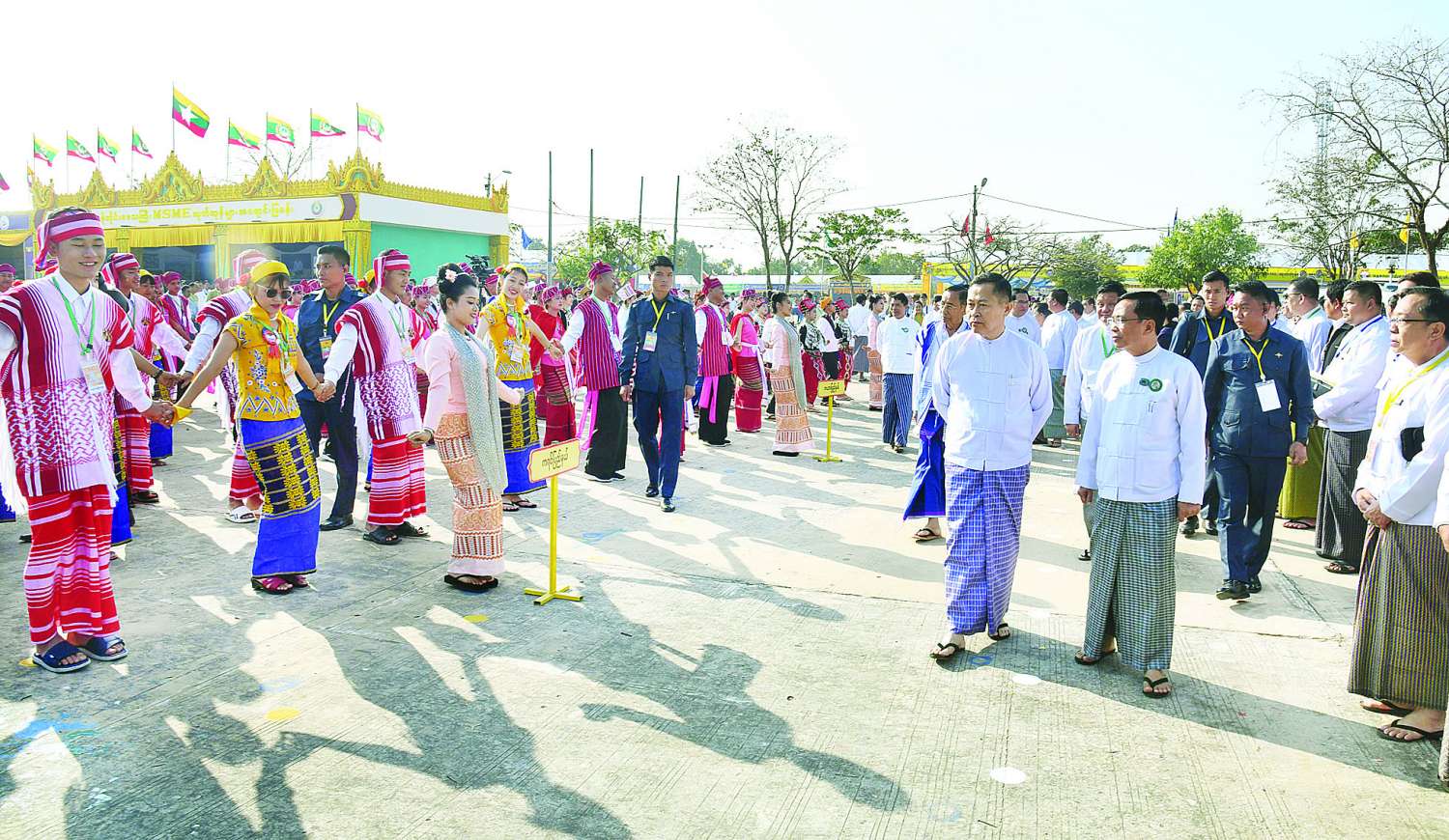 ထို့နောက် နိုင်ငံတော်စီမံအုပ်ချုပ်ရေးကောင်စီဒုတိယဥက္ကဋ္ဌ ဒုတိယဝန်ကြီးချုပ်နှင့်အဖွဲ့ဝင်များသည် သာသနာရေးနှင့်ယဉ်ကျေးမှုဝန်ကြီးဌာန၊ အနုပညာဦးစီးဌာနမှ အနုပညာရှင်များ၊ ပြန်ကြားရေးဝန်ကြီးဌာန၊ မြန်မာ့အသံနှင့် ရုပ်မြင်သံကြားမှ ဝန်ထမ်းများ၊ နေပြည်တော်ကောင်စီ၊ တိုင်းဒေသကြီးနှင့် ပြည်နယ်များမှ တိုင်းရင်းသား ရိုးရာယိမ်း အဖွဲ့များ၏ “ပြည်ထောင်စုရဲ့ ထာဝရအလှ’’ တေးသီချင်းဖြင့် ကပြဖျော်ဖြေတင်ဆက်မှုကို ကြည့်ရှုအားပေးပြီး ရင်းရင်းနှီးနှီးလိုက်လံနှုတ်ဆက်ကြသည်။