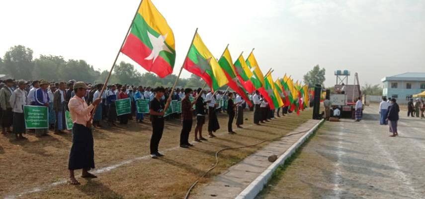 ဦးစွာ သက်ဆိုင်ရာမြို့နယ်များမှ ဒေသခံတိုင်းရင်းသား မျိုးချစ်ပြည်သူများက သတ်မှတ်နေရာအသီးသီး၌ စုဝေးကြပြီး ကျင်းပမည့်နေရာအသီးသီးသို့ ချီတက်ထောက်ခံကြသည်။ ချီတက်ရာလမ်းတစ်လျှောက်တွင် ဒေသခံမျိုးချစ်ပြည်သူများက “ဒို့တာဝန်အရေးသုံးပါးကို ထိန်းသိမ်းစောင့်ရှောက်ရန်အတွက် စစ်ပညာသင်ကြားရန်နှင့် နိုင်ငံတော်ကာကွယ်ရေးအတွက် စစ်မှုထမ်းဆောင်ရန် နိုင်ငံသားတိုင်းတွင် တာဝန်ရှိသည်၊ ပြည်သူ့စစ်မှုထမ်းဥပဒေကို အပြည့်အဝထောက်ခံကြိုဆိုပါသည်၊ နိုင်ငံတော်ကို ကာကွယ်ဖို့ တစ်မျိုးသားလုံးစစ်မှုထမ်းဆောင်ကြပါစို့၊ နိုင်ငံတော်ကိုပြည်တွင်း/ ပြည်ပအန္တရာယ်များက ကာကွယ်ဖို့ စစ်မှုထမ်းဆောင်ကြပါစို့၊ နိုင်ငံတော်၏ လွတ်လပ်ရေး၊ အချုပ်အခြာအာဏာနှင့် နယ်မြေတည်တံ့ခိုင်မြဲရေးတို့ကို ကာကွယ်စောင့်ရှောက်ရေးသည် နိုင်ငံသားတိုင်း၏ တာဝန်ဖြစ်သည်” စသည့် ကြွေးကြော်သံများကို သံပြိုင်ကြွေးကြော်ခဲ့ကြပြီး သတ်မှတ်နေရာအသီးသီးတွင် ပြည်သူ့စစ်မှုထမ်းဥပဒေအား ကြိုဆိုထောက်ခံပါသည်ဟု တစ်ခဲနက်ဆန္ဒထုတ်ဖော်ဟောပြောခဲ့ပြီး ကြိုဆိုထောက်ခံပွဲကို အောင်မြင်စွာ ရုတ်သိမ်းခဲ့ကြကြောင်း သတင်းရရှိသည်။
