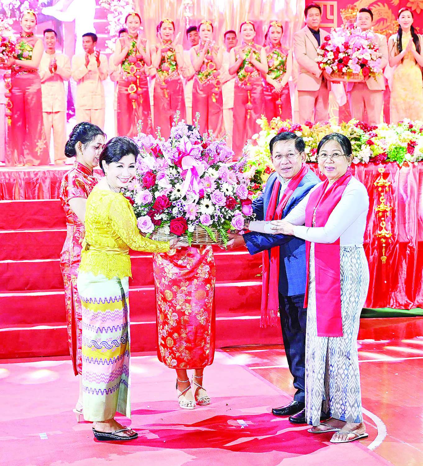 ထို့နောက် နိုင်ငံတော်စီမံအုပ်ချုပ်ရေးကောင်စီဥက္ကဋ္ဌ နိုင်ငံတော်ဝန်ကြီးချုပ်နှင့် ဇနီး၊ မြန်မာနိုင်ငံဆိုင်ရာ တရုတ်နိုင်ငံ သံအမတ်ကြီးတို့သည် ဖျော်ဖြေတင်ဆက်ခဲ့ကြသည့် တရုတ်နိုင်ငံမှ လာရောက်သည့် တရုတ်ရိုးရာယဉ်ကျေးမှုအဖွဲ့များ၊ ပြည်သူ့ဆက်ဆံရေးနှင့် စိတ်ဓာတ်စစ်ဆင်ရေးညွှန်ကြားရေးမှူးရုံးကွပ်ကဲမှုအောက် မြဝတီယဉ်ကျေးမှုအဖွဲ့နှင့် အနုပညာရှင်များ၊ ချစ်ကြည်ရေး စားပွဲတင်တင်းနစ်အားကစားအဖွဲ့ဝင်များကို အမှတ်တရလက်ဆောင်ပန်းခြင်းများ ပေးအပ်ကြသည်။