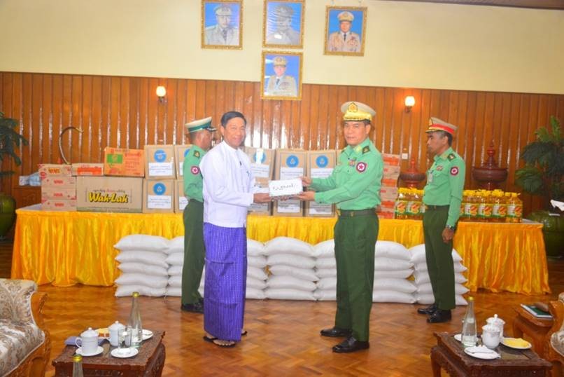 ထိုသို့ ပေးအပ်လျက်ရှိရာ ယနေ့တွင် လူဝင်မှုကြီးကြပ်ရေးနှင့်ပြည်သူ့အင်အား ဝန်ကြီးဌာန၊ လူမှုဝန်ထမ်းကယ်ဆယ်ရေးနှင့် ပြန်လည်နေရာချထားရေးဝန်ကြီးဌာနနှင့် Mytel Co.,Ltd တို့မှ ဝန်ထမ်းမိသားစုများက ဂုဏ်ပြုချီးမြှင့်ငွေနှင့် စားသောက်ဖွယ်ရာများပေးအပ်ခြင်းကို နေပြည်တော်တိုင်းစစ်ဌာနချုပ်ရှိ ပေါင်းလောင်းရိပ်သာ၌ပြုလုပ်ရာ လူမှုဝန်ထမ်းကယ်ဆယ်ရေးနှင့် ပြန်လည်နေရာချထားရေးဝန်ကြီးဌာန ပြည်ထောင်စုဝန်ကြီး ဒေါက်တာစိုးဝင်း၊ တိုင်းမှူး ဗိုလ်ချုပ် စောသန်းလှိုင်နှင့် လူဝင်မှုကြီးကြပ်ရေးနှင့် ပြည်သူ့အင်အားဝန်ကြီးဌာန ဒုတိယဝန်ကြီး၊ အလှူရှင်များ တက်ရောက်ကြသည်။ ထို့နောက် လူမှုဝန်ထမ်းကယ်ဆယ်ရေးနှင့် ပြန်လည်နေရာချထားရေးဝန်ကြီးဌာနမှ ဝန်ထမ်းမိသားစုများက ပေးအပ်လှူဒါန်းသည့် ဂုဏ်ပြုချီးမြှင့်ငွေ ကျပ်သိန်း ၃၀၀ နှင့် ငွေကျပ် ၂၂၅၀၀၀၀ တန်ဖိုးရှိ ကာပေါ်လစ်ဆပ်ပြာများအားလည်းကောင်း၊ လူဝင်မှုကြီးကြပ်ရေးနှင့် ပြည်သူ့အင်အားဝန်ကြီးဌာနမှ ဝန်ထမ်းမိသားစုများက ပေးအပ်လှူဒါန်းသည့် ငွေကျပ် ၉၁၅၀၀၀၀ တန်ဖိုးရှိ စားသောက်ဖွယ်ရာများအားလည်းကောင်း၊ Mytel Co.,Ltd မှ ဝန်ထမ်းမိသားစုများက ပေးအပ်လှူဒါန်းသည့် ငွေကျပ် ၂၅၀၀၀၀၀ တန်ဖိုးရှိ စားသောက်ဖွယ်ရာများအားလည်းကောင်း လူမှုဝန်ထမ်းကယ်ဆယ်ရေးနှင့် ပြန်လည်နေရာချထားရေးဝန်ကြီးဌာန ပြည်ထောင်စုဝန်ကြီး၊ လူဝင်မှုကြီးကြပ်ရေးနှင့်ပြည်သူ့အင်အားဝန်ကြီးဌာန ဒုတိယဝန်ကြီးနှင့် အလှူရှင်များက တိုင်းမှူးထံ အသီးသီး ဂုဏ်ပြုပေးအပ်သည်။ ထို့နောက် တိုင်းမှူးက ဂုဏ်ပြုမှတ်တမ်းလွှာပြန်လည်ပေးအပ်ပြီး ကျေးဇူးတင်စကားပြန်လည်ပြောကြားခဲ့သည်။